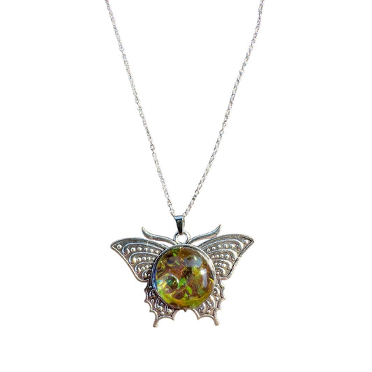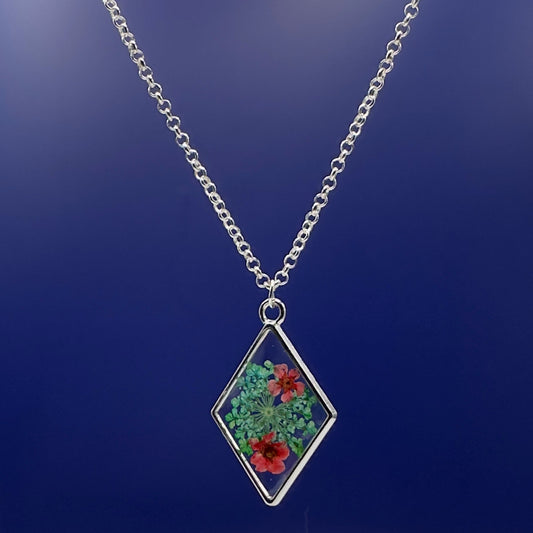 Green & red pendant with pressed flowers