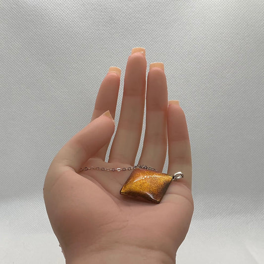 Oval pressed yellow flower necklace