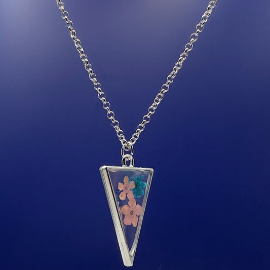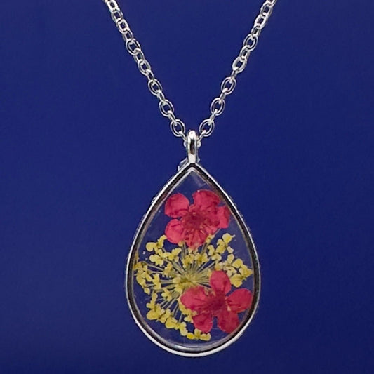 Vibrant pressed flowers oval necklace