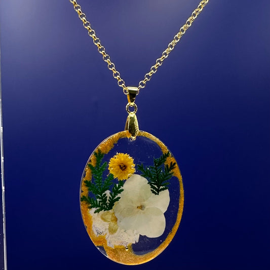 Set of white and orange flowers in gold glitter border